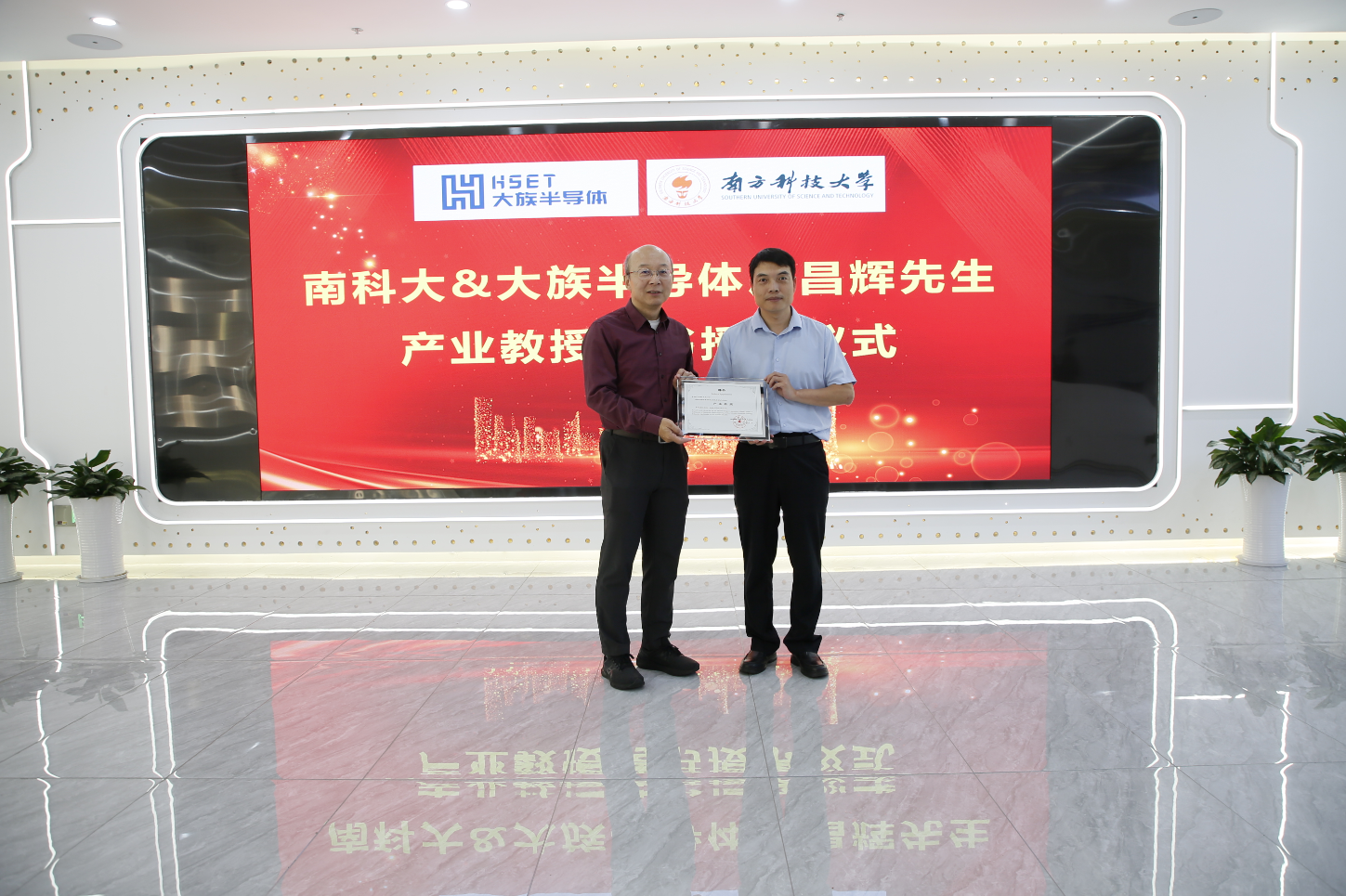 兩位合作方代表發(fā)言后,儀式正式進(jìn)入到了隆重的授牌環(huán)節(jié),南方科技大學(xué)授予大族半導(dǎo)體“研究生實(shí)踐基地”的牌匾,標(biāo)志著雙方將在科研、教育等領(lǐng)域展開更為緊密的合作。與此同時(shí),聘任大族半導(dǎo)體研發(fā)總監(jiān)莊昌輝擔(dān)任南方科技大學(xué)電子與電氣工程系“產(chǎn)業(yè)教授”,莊總的加入將為學(xué)校的教學(xué)與科研帶來新的活力和實(shí)踐經(jīng)驗(yàn)。在儀式上,大族半導(dǎo)體榮幸聘請了南方科技大學(xué)電子與電氣工程系創(chuàng)系主任孫小衛(wèi)教授擔(dān)任“大族半導(dǎo)體首席科學(xué)家”,孫小衛(wèi)教授的加入將為大族半導(dǎo)體的技術(shù)研發(fā)和產(chǎn)業(yè)升級提供強(qiáng)有力的學(xué)術(shù)支持。